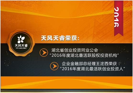 天風(fēng)天睿投資股份有限公司榮獲“2016年度湖北最活躍股權(quán)投資機(jī)構(gòu)”