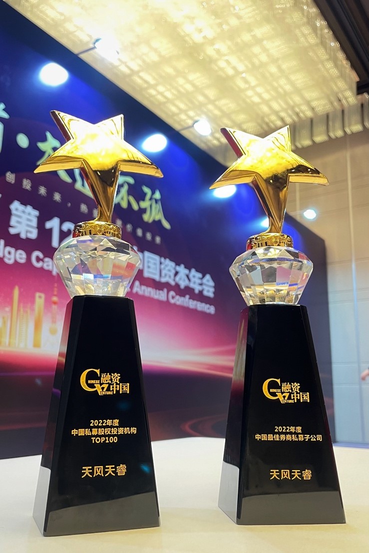 2023年1月10-11日,由融資中國主辦的“2023(第12屆)中國資本年會(huì)”在上海舉行,2022年度中國股權(quán)投資年度綜合榜單于會(huì)上正式揭曉。天風(fēng)天睿憑借持續(xù)的深入研究、深耕產(chǎn)業(yè)和深度服務(wù),連續(xù)第七年榮登“中國私募股權(quán)投資機(jī)構(gòu)TOP100”榜單,并榮獲“中國最佳券商私募子公司”獎(jiǎng)項(xiàng)。