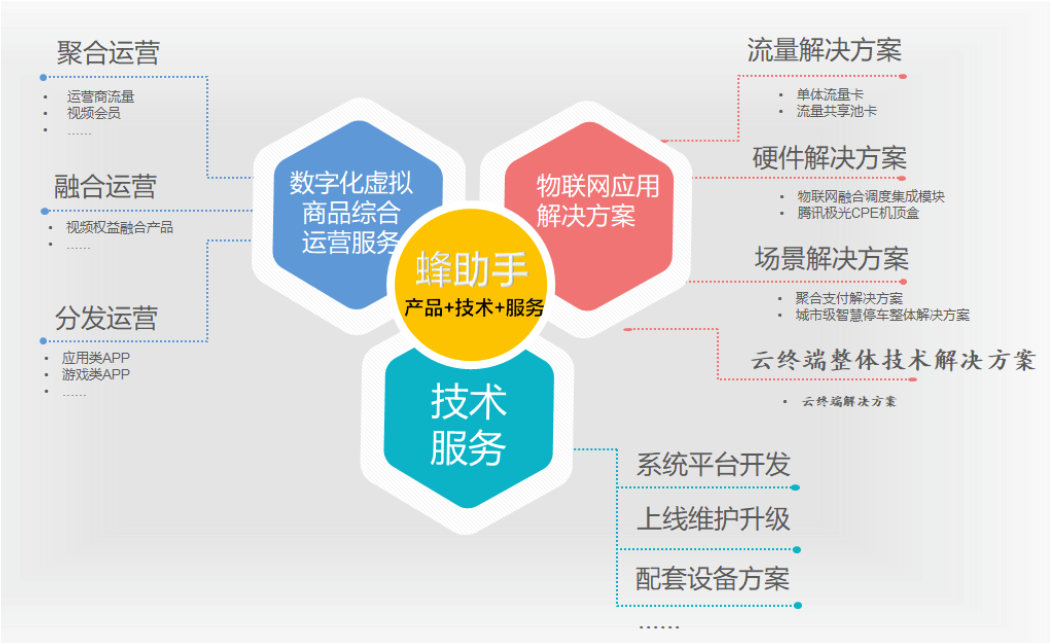 以移動(dòng)互聯(lián)網(wǎng)的創(chuàng)新發(fā)展熱潮為土壤,蜂助手基于持續(xù)的技術(shù)迭代和服務(wù)模式創(chuàng)新,現(xiàn)已發(fā)展為國內(nèi)優(yōu)秀的互聯(lián)網(wǎng)數(shù)字化虛擬商品綜合服務(wù)提供商,通過獨(dú)立自主開發(fā)的綜合服務(wù)云平臺(tái),為移動(dòng)互聯(lián)網(wǎng)客戶提供數(shù)字化虛擬商品綜合運(yùn)營服務(wù),為物聯(lián)網(wǎng)多場景提供軟、硬件一體化綜合解決方案及云終端解決方案,并提供定制化運(yùn)營支撐服務(wù)及技術(shù)服務(wù)。