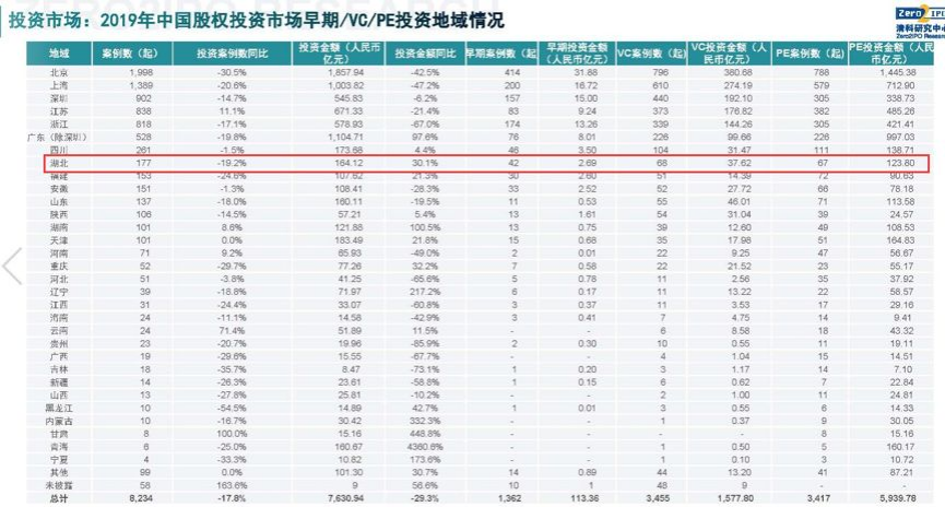 湖北創(chuàng)投勢力,是中國創(chuàng)投版圖上一支不可或缺的力量。清科研究中心報(bào)告顯示,湖北省2019年投資案例數(shù)量位列各省市的第8名。
