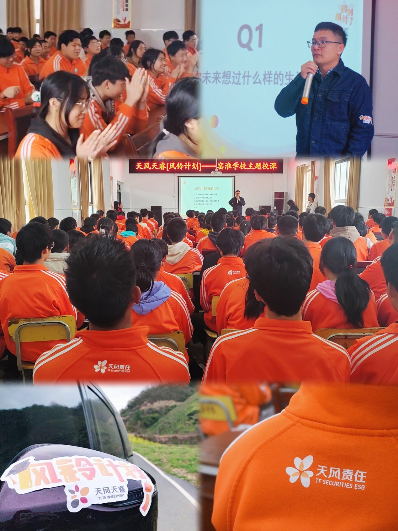 2023年3月底,天風(fēng)天睿黨支部再一次來到了湖北省十堰市房縣窯淮鎮(zhèn),開展了『風(fēng)鈴計(jì)劃』2023年度春季助學(xué)行動。在房縣窯淮鎮(zhèn)政府、窯淮鎮(zhèn)中心學(xué)校、天風(fēng)證券房縣鄉(xiāng)村振興駐村工作站的支持下,天風(fēng)天睿黨支部回訪了結(jié)對幫扶的學(xué)生家庭,并走進(jìn)窯淮鎮(zhèn)中心學(xué)校,由王曉昱為初三年級學(xué)生帶來了一堂關(guān)于“實(shí)踐性職業(yè)技能及心理壓力應(yīng)對”的主題校課。