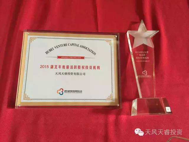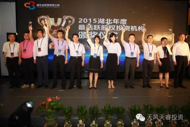8月10日,在“湖北省省級股權引導基金啟動儀式”上,2015湖北年度優(yōu)秀“股權投資機構”、“投資人”、“托管銀行”名單隆重揭曉。天風天睿投資有限公司及子公司分別榮獲2015年度最活躍股權投資機構等獎項,這是對于天風天睿近年來在股權投資領域發(fā)展成果的肯定和鼓勵。