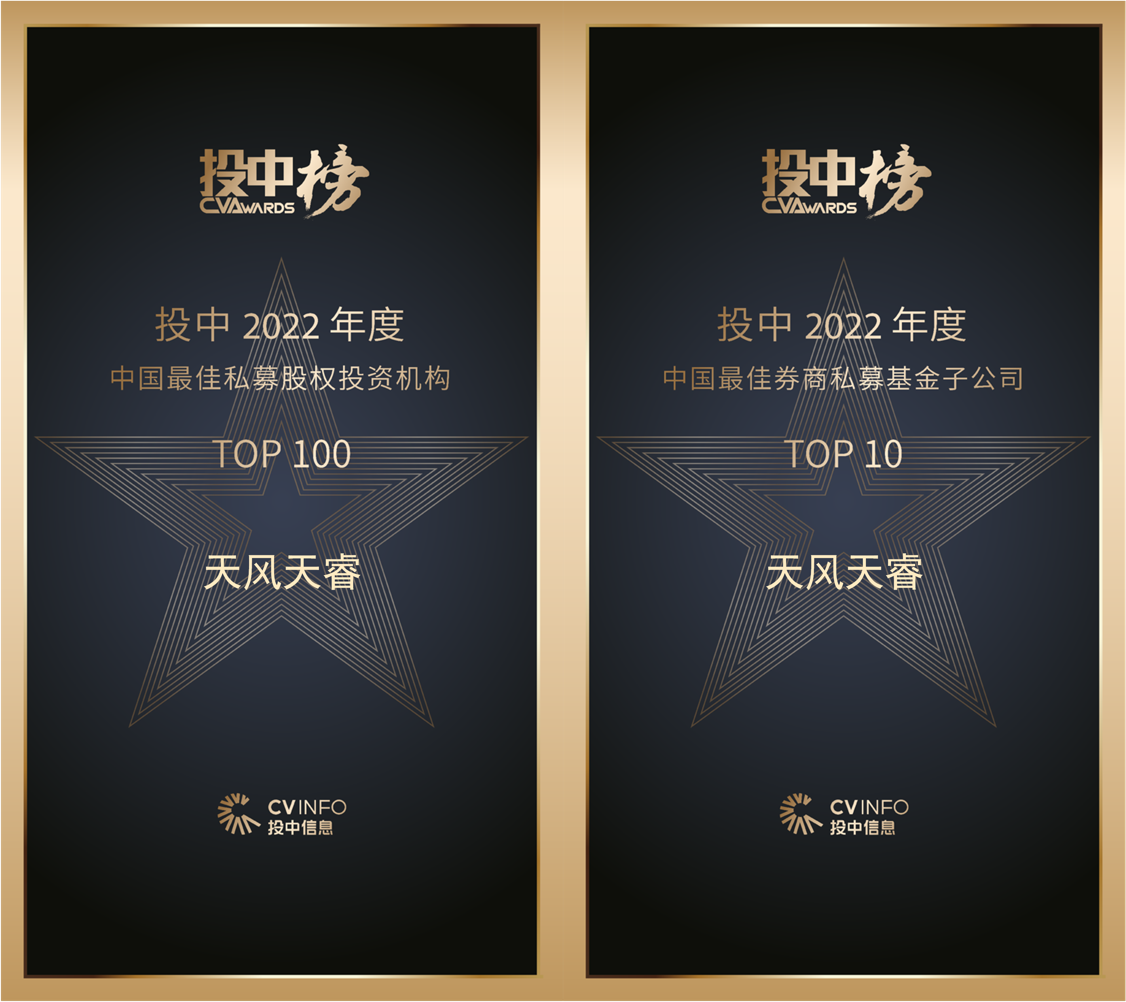 2023年5月17日至19日,投中網(wǎng)2023中國投資年會在上海舉辦,股權(quán)投資行業(yè)年度榜單投中榜于會上正式發(fā)布。天風(fēng)天睿憑借在2022年度的優(yōu)秀投資表現(xiàn),連續(xù)第七年榮登投中榜,獲2022年度“中國最佳私募股權(quán)投資機(jī)構(gòu)TOP100”、“中國最佳券商私募基金子公司TOP10”兩個(gè)獎項(xiàng)。